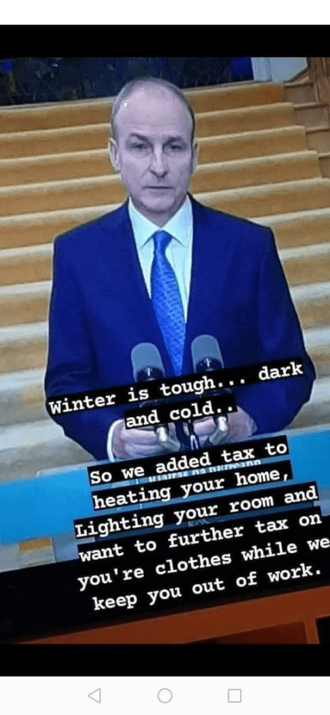 4 Nov, 2021 Uncategorized Fianna Fail broke the Country, along with Gobshite Ryan, back in 2009, now November 2021, they want to Freeze the Balls and the Rest. out of all of us this Winter??? Posted by Fred Bassett Share this: Click to share on X (Opens in new window) X Click to share on Facebook (Opens in new window) Facebook Click to share on LinkedIn (Opens in new window) LinkedIn Click to share on Reddit (Opens in new window) Reddit Click to email a link to a friend (Opens in new window) Email More Click to print (Opens in new window) Print Like Loading... Related