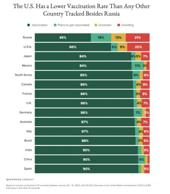 18 Jan, 2022 Uncategorized Vaccine Apartheid blights poor countries yet US, the wealthiest, with Russia not far behind, have the most Vaccine Hesitants or even more extreme anti-vaxxers. Interesting chart below. Posted by Fred Bassett Share this: Share on X (Opens in new window) X Share on Facebook (Opens in new window) Facebook Share on LinkedIn (Opens in new window) LinkedIn Share on Reddit (Opens in new window) Reddit Email a link to a friend (Opens in new window) Email More Print (Opens in new window) Print Like Loading... Related