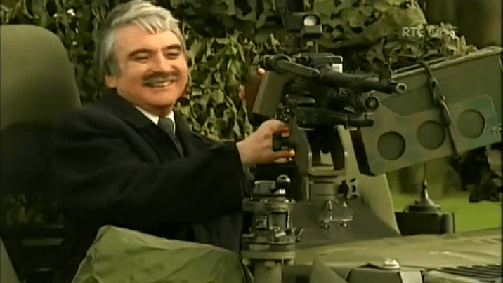 Socialist Party TD Joe Higgins asked Ms Harney: “As a matter of Dáil security, did you at least require the Minister for Defence to leave his weapon at the door this morning?”