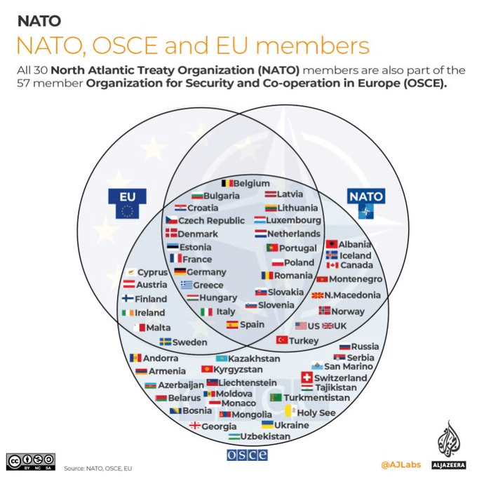 7 Mar, 2022 Uncategorized NATO, OSCE and EU members. All 30 NATO members are also part of the Organization for Security and Co-operation in Europe (OSCE) Posted by Fred Bassett Share this: Click to share on X (Opens in new window) X Click to share on Facebook (Opens in new window) Facebook Click to share on LinkedIn (Opens in new window) LinkedIn Click to share on Reddit (Opens in new window) Reddit Click to email a link to a friend (Opens in new window) Email More Click to print (Opens in new window) Print Like Loading... Related
