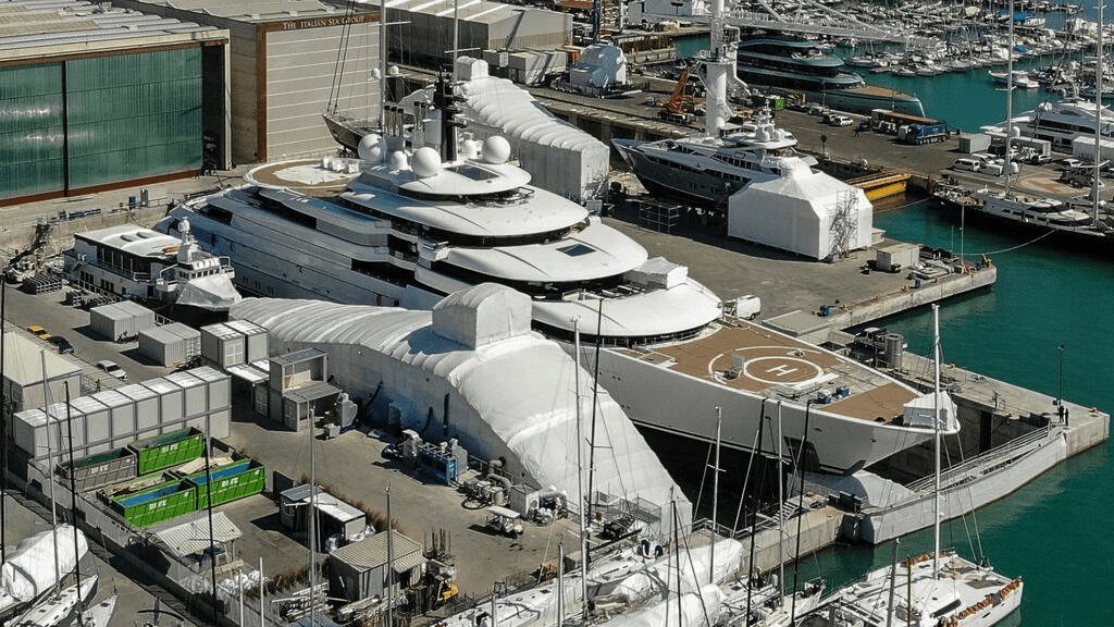 For several months, it has been parked for maintenance work at The Italian Sea Group’s shipyard at the Marina di Carrara, within the western seaside town of Massa not far from Tuscany’s famous marble quarries of Carrara.