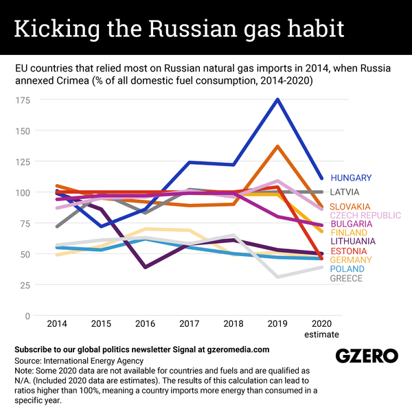 Lithuania made headlines in recent days, announcing that it’s ending all imports of Russian natural gas. Indeed, this shift has been seven years in the making. Spooked by Russia’s annexation of Crimea in 2014, Lithuania – which at the time got almost 100% of its natural gas imports from Russia – began diversifying its energy procurement methods. Fast forward to 2022, and it’s ditching Moscow entirely. The other Baltic states are on a similar trajectory. What efforts have other top EU importers of Russian natural gas made to reduce reliance on Moscow during that same time? We take a look here.