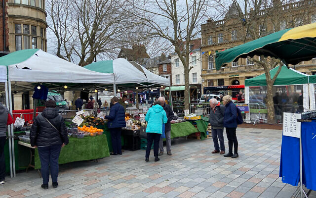 Market Square, Salisbury, England, April 5, 2022 (DH / Times of Israel)