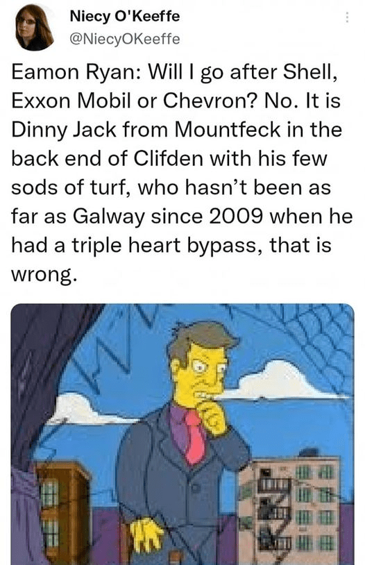 15 Apr, 2022 Uncategorized Gobshite Ryan, must be Stopped; Rural Ireland needs Support. Posted by Fred Bassett Share this: Click to share on X (Opens in new window) X Click to share on Facebook (Opens in new window) Facebook Click to share on LinkedIn (Opens in new window) LinkedIn Click to share on Reddit (Opens in new window) Reddit Click to email a link to a friend (Opens in new window) Email More Click to print (Opens in new window) Print Like Loading... Related