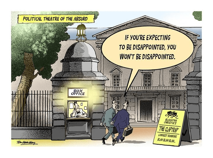 There are times when I think newspaper columns that deal with Irish politics should be written by theatre critics. What passes for political activity is often no more than contrived drama.