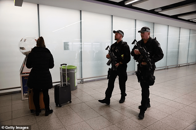‘Officers from the Met’s Counter Terrorism Command arrested a man in his 40s at Gatwick airport on Monday. He remains in custody,’ a Met police spokesperson said.