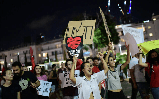 Israelis protest against the soaring housing prices in Tel Aviv and the general cost of living, on July 2, 2022. (Tomer Neuberg/Flash90)