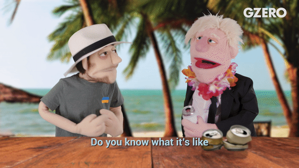 PUPPET REGIME: Zelensky and Boris Johnson hit the beach