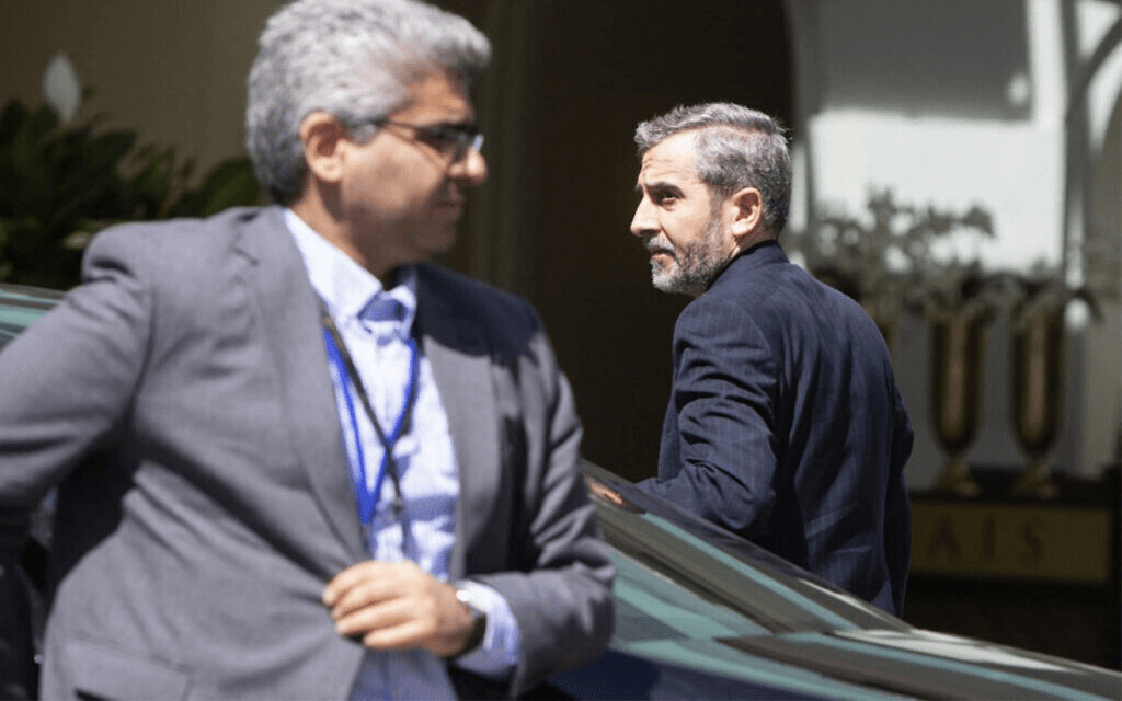 Iran’s chief nuclear negotiator Ali Bagheri Kani, at right, arrives at the Coburg Palais, the venue of the Joint Comprehensive Plan of Action (JCPOA) talks in Vienna on August 4, 2022. (Alex Halada/AFP)