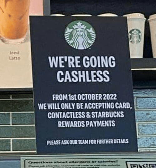 “WE’RE GOING CASHLESS! FROM 1st OCTOBER 2022. WE WILL ONLY BE ACEPTING CARDS!