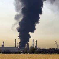Illustrative: A dark plume of smoke rises up from a main oil refinery south of Tehran, Iran, June 3, 2021. (AP Photo/Ebrahim Noroozi)