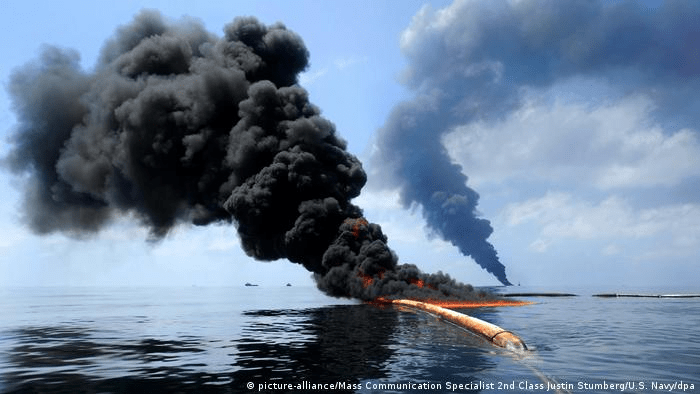Controlled fires burned off oil spilled in the Gulf of Mexico after the Deepwater Horizon disaster in 2010