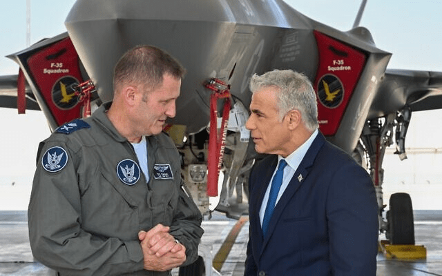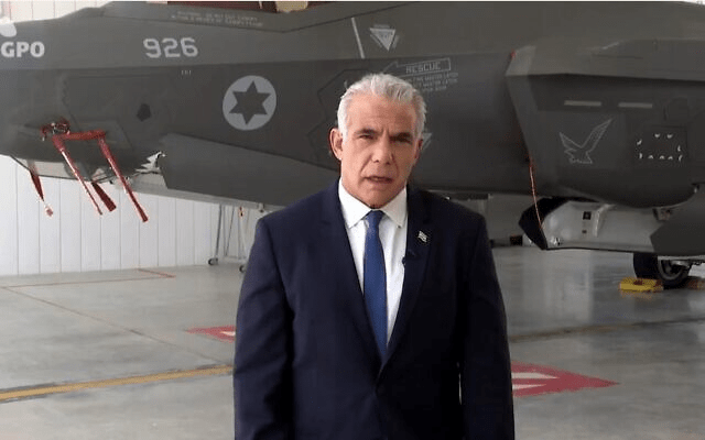 Standing next to an F-35 fighter jet, Lapid issues warning to Iran: ‘Don’t test us’