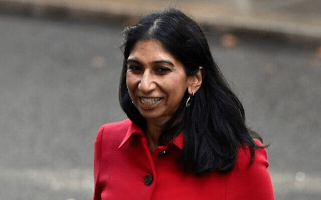 Britain’s Home Secretary Suella Braverman leaves from 10 Downing Street in central London on September 7, 2022, after attending a meeting of the Government’s newly appointed Cabinet. (JUSTIN TALLIS/AFP)