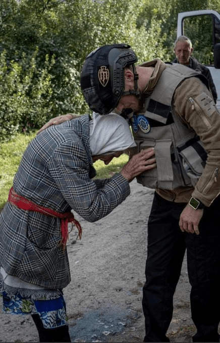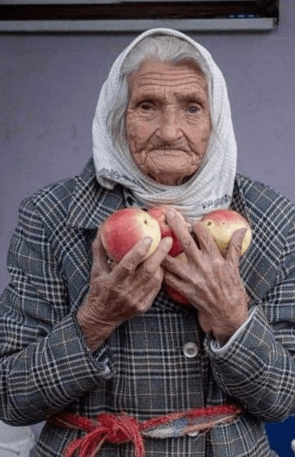A 92-year-old Paraskovia who lives in the frontline area treats her guests, humanitarian volunteers, to apples. She survived two dictators, Stalin and Hitler. We wish her to survive ****n.