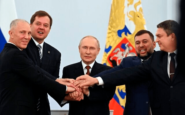 The four annexed territories create a crucial land corridor between Russia and the Crimean Peninsula, annexed by Moscow in 2014.
