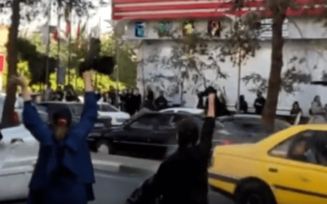 One demonstration in Tehran sees some 30 women remove their headscarves while chanting ‘Death to the dictator!’ as passing cars honk in support