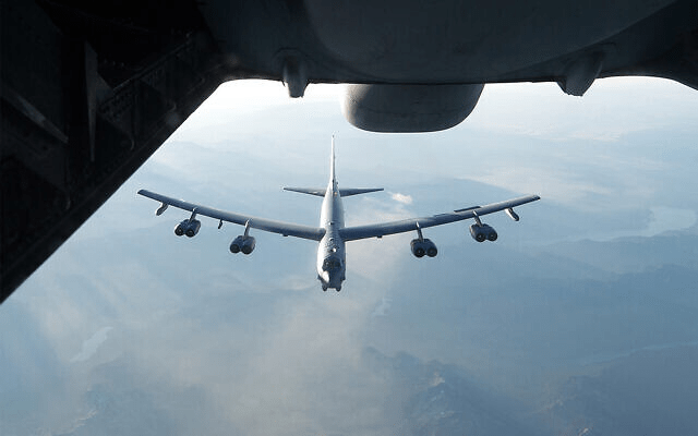 Illustrative: A US B-52H Stratofortress from Barksdale Air Force Base in Louisiana is refueled during a training exercise, August 21, 2017. (US Air Force/Louis Briscese)