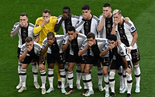 DOHA, Qatar — Germany’s players covered their mouths for the team photo before their World Cup opener against Japan on Wednesday in protest at FIFA’s refusal to allow rainbow-themed armbands.