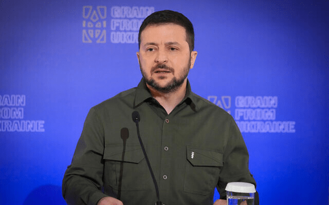 Ukrainian President Volodymyr Zelensky attend a news conference in Kyiv, Ukraine, November 26, 2022. (AP Photo/Efrem Lukatsky)