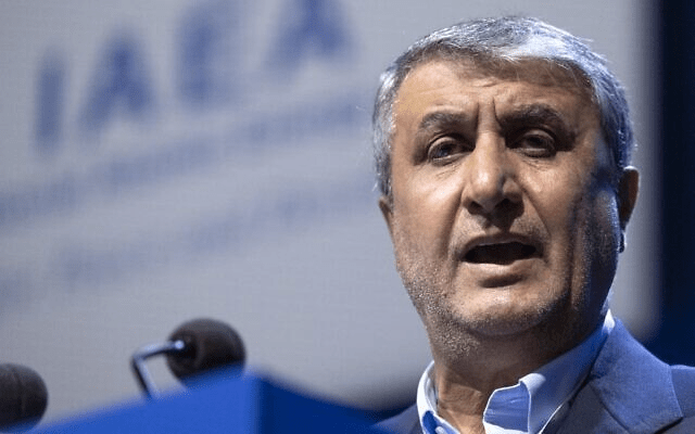 Iran’s nuclear chief Mohammad Eslami speaks during the General Conference of the International Atomic Energy Agency (IAEA) at the agency’s headquarters in Vienna, Austria, on September 26, 2022. (Joe Klamar/AFP)
