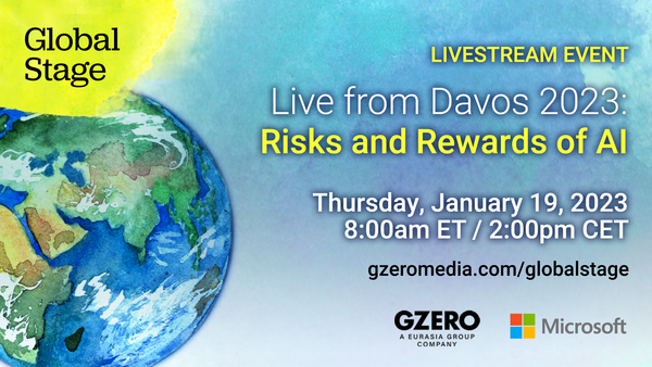 Join Microsoft and GZERO Media to discuss the Risks and Rewards of AI on Thursday, Jan 19, at 8 am ET / 2 pm CET, live from the World Economic Forum in Davos, Switzerland. Nicholas Thompson, CEO of The Atlantic, will moderate a candid conversation with Microsoft’s Vice Chair and President Brad Smith, Eurasia Group and GZERO Media’s President Ian Bremmer, and a panel of experts.