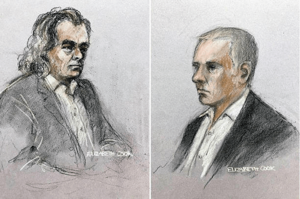 Court sketches of Gerry Hutch (left) and Jonathan Dowdall (right) at the Regency murder trial being heard at the Special Criminal Court in Dublin© Elizabeth Cook/PA