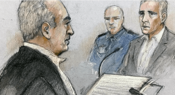 A court illustration of Dowdall right testifying in court© PA