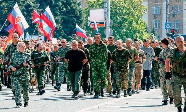 On August 24, 2014, russian monsters held a so called “Ukr POWs parade” in Donetsk. The crowd around was swearing and throwing trast at the exhausted hostages. This was a war crime and violation of Geneva conventions. The world had been too blind to russian atrocities so long