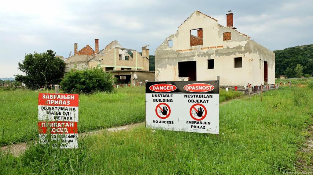 These roofless houses create a grim atmosphere in the village: “They are killing us psychologically,” says resident Dragan Karajcic, “It is a psychological war.”