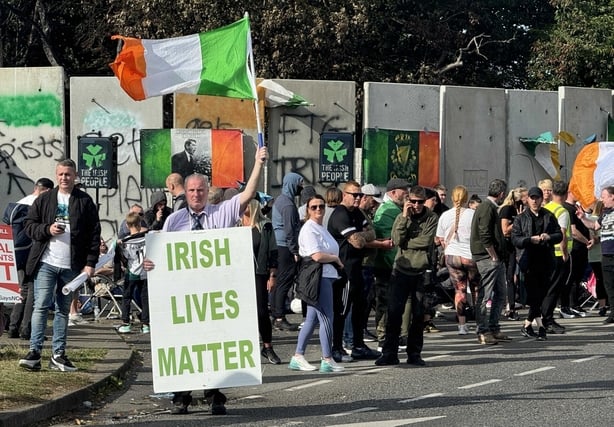 People carried signs that read ‘Irish Lives Matter’ and ‘The Irish People’.