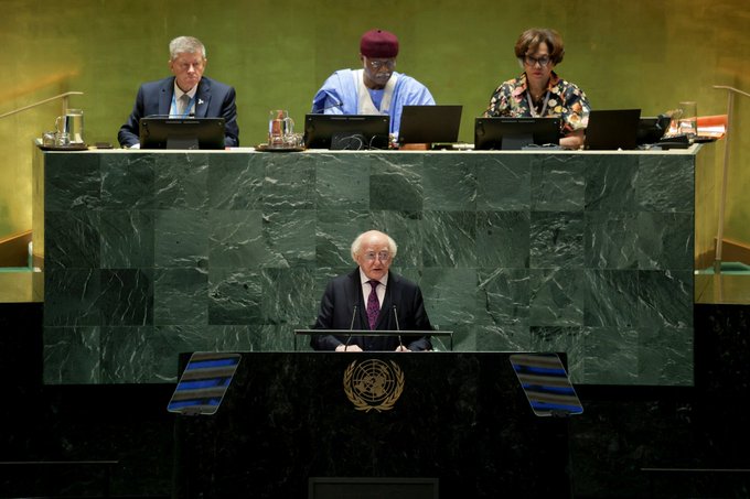 President Higgins is in New York where he addressed the UN Summit of the Future at the organisation’s headquarters.