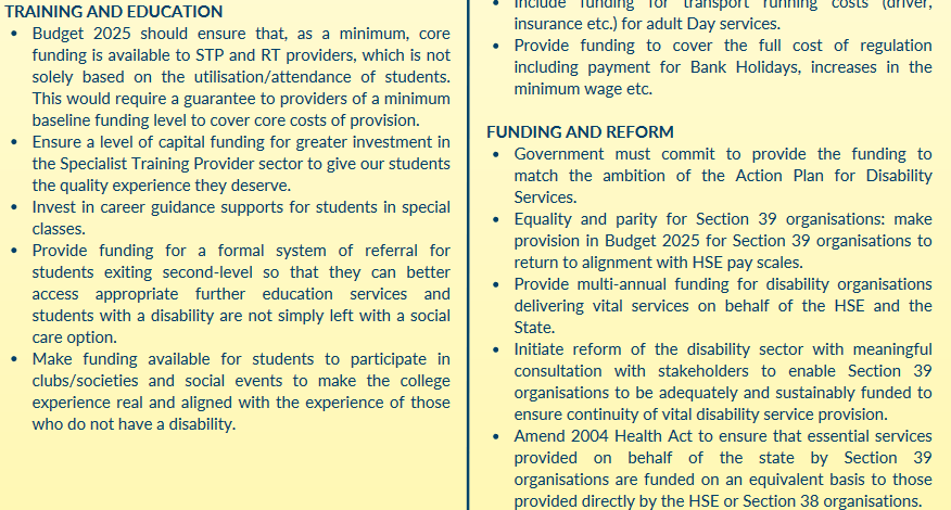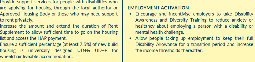 The employment rate in Ireland for people with disabilities at 32%, is the lowest in the EU and compares poorly with the EU average of 51%: At the same time, the disability employment gap is the highest. The EU average gap between the employment rate of persons with disabilities and others stands at 24%, while in Ireland, it stands at 44%. Source: European Disability Forum (2023) European Human Rights Report Issue 7. As the largest non-governmental employer of disabled people through Rehab Enterprises and the largest provider of Specialist Training Provision (STP) for disabled people through NLN, Rehab has considerable expertise and experience in employment activation programmes for people with disabilities and in placing people in employment/work experience placements….