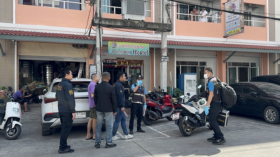 PATTAYA — Chonburi Police and Pattaya City Police investigators are examining the mysterious death of a Thai woman discovered on Sunday in a fifth-floor hostel in a five-story building in the Jomtien area, Moo 12, Nongprue, Banglamung, Chonburi.