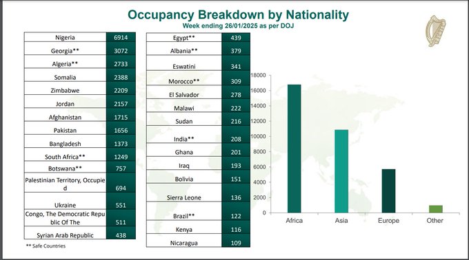 Of the 33,000 people currently receiving free accommodation, money & benefits here in Ireland 9,288 are from safe countries including