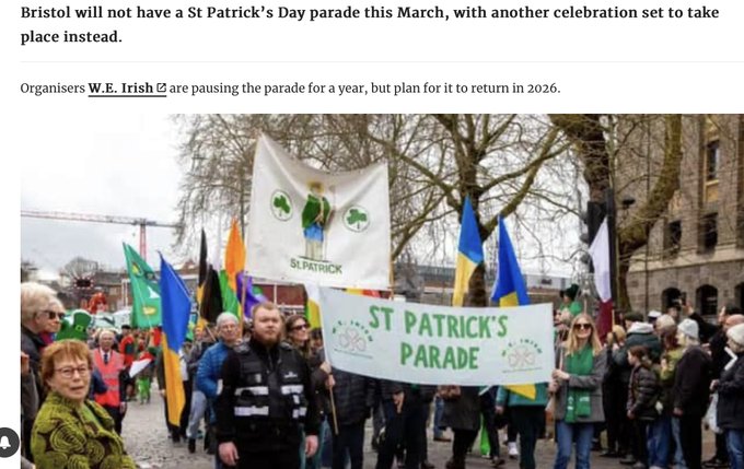 @JkST PATRICK’S DAY…. A TERROR THREAT OR ERADICATING A TRADITIONAL IRISH DAY? The Irish are loved all over the world. The Irish culture, heritage, language and Christianity is under threat by globalists. Why are St. Patrick’s day festivities being cancelled? *Ireland- under ISIS terror threat for St. Patrick’s Day *Birmingham -cancelled their St. Patrick’s parade *Bristol – called their St. Patrick’s parade *Nova Scotia – cancelled their St.Patrick’s parade