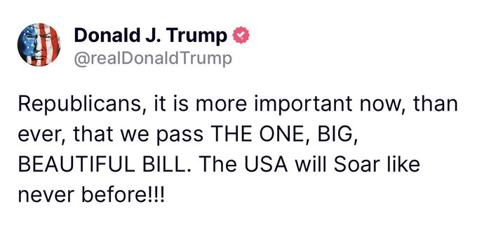9 Apr, 2025 Uncategorized NEW FROM TRUMP: “Republicans, it is more important now, than ever, that we pass THE ONE, BIG, BEAUTIFUL BILL. The USA will Soar like never before!” Posted by Fred Bassett DogeDesigner @cb_doge NEW FROM TRUMP: “Republicans, it is more important now, than ever, that we pass THE ONE, BIG, BEAUTIFUL BILL. The USA will Soar like never before!” Share this: Click to share on X (Opens in new window) X Click to share on Facebook (Opens in new window) Facebook Click to share on LinkedIn (Opens in new window) LinkedIn Click to share on Reddit (Opens in new window) Reddit Click to email a link to a friend (Opens in new window) Email More Click to print (Opens in new window) Print Like Loading... Related
