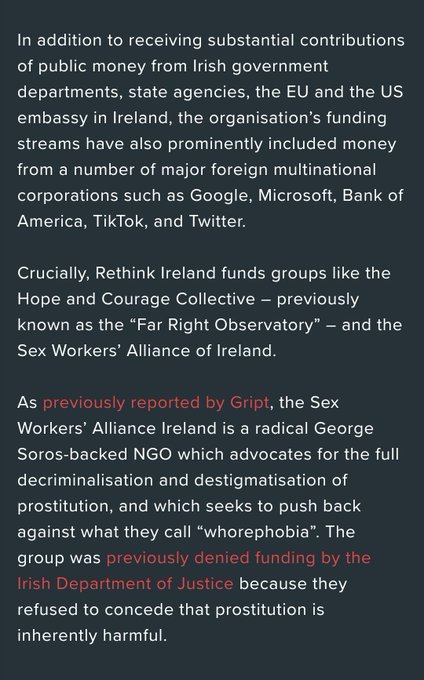 @PeterPau One of the most powerful NGOs in Ireland has Irish Tánaiste [Deputy PM] Simon Harris’ brother on its board. Rethink Ireland received over €56 million from the Irish government between 2016 and 2023. Rethink funds a George Soros NGO linked to lobbying for the legalisation of prostitution in Ireland. Rethink also funds the Hope & Courage formerly Far Right Observatory. An unelected shadowy NGO who monitors Irish citizens online and the “far-right” to report back to the government to lobby for “hate-speech” laws and other draconian restrictions on Irish citizens.