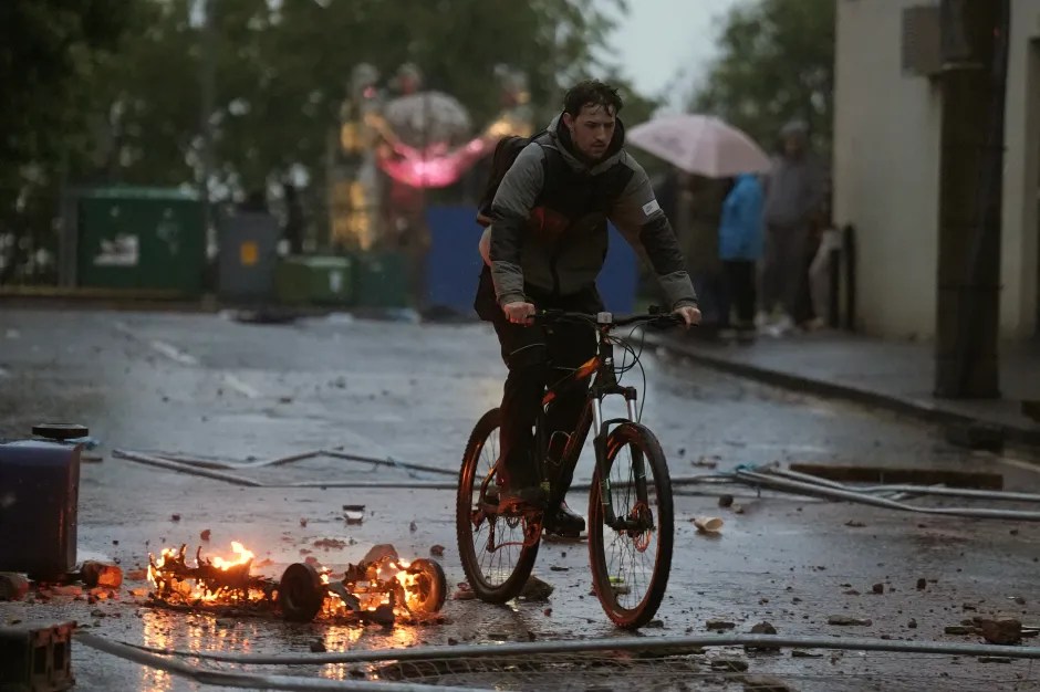 Police barricades are blocking roads amid another night of disorder – as families are left hiding in wardrobes and attics in fear of the violence.