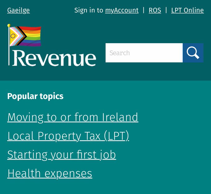 What country is this? What nation’s revenue service? Where is the harp of Brian Boru, High King, ‘Emperor of the Irish’, the symbol of the Irish Government? Where is the Irish flag? Why has the flag of a campaign group replaced all the symbols of the Irish nation?
