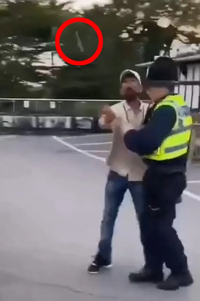 The migrant then flicks a cigarette towards the group before shouting back at them.