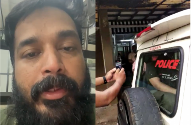 Sooraj Muraleedharan (L), and a still from a video of his arrest in Kerala (R).