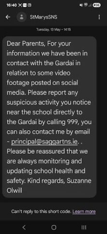This led the local primary school St. Mary’s to contact parents asking them to report any “suspicious activity” to the Gardaí or to the school.