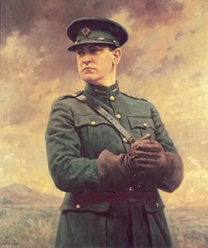 On this day in 1922, Michael Collins’ convoy drove through Béal na mBláth and into eternity. Civil War had erupted only months before. Sacrifices, alliances, and betrayals unimaginable weeks ago were routine in the new bloodbath of brother against brother. Despite these dangers, Collins believed he wasn’t a credible target for Anti-Treaty Irregulars. especially in his native Cork. He set off to inspect military installations in that beautiful, wild corner of the country. Perhaps he confused his hopes of reconciliation and renewal with the desires of the new domestic enemy. When the National Army Commandant Joe Sweeney warned against the tour, Collins replied,’No one is going to shoot me in my county.’ That morning, Collins’ open-top car and a small armoured motorcade with 15 men began their fateful drive from Cork City through West Cork. On their way, he also hoped to parley with anti-Treaty IRA volunteers. His whistle-stop route was to take them through Macroom, Bandon, Clonakilty, Rosscarbery, and Skibbereen. Collins makes a pit-stop at Long’s pub, “The Diamond,” looking for directions. It is here where Denny ‘the Dane’ Long, a lookout for anti-treaty leader Tom Hales, spotted the Big Fella. His travel plans to return through the crossroads area of Béal na mBláth were communicated back to base, and the trap was set. Around 7:45pm, Collins’ cars return through the village of Béal na mBláth and into the jaws of the enemy. But the Anti-Treaty lads would not have it all their own way. The convoy was late, so many of the IRA columns had already dispersed from the hiding places. They had even begun to dismantle and move land mines they’d installed at the choke point road. However, the main obstruction, a dray cart blocking the path, was still on site. Free State commander Dalton wanted to try and barge through the ambush, but Collins vaingloriously insisted they stay and fight. When the assassin’s guns speak, they roar for almost half an hour. Collins and his guards left the open-top car and ran for cover at a ditch on the roadside, returning fire. Collins then broke this position and got behind one of his armoured where he began returning fire this time with his Lee Enfield rifle. The armoured car was equipped with a Vickers machine gun, which started to riddle the anti-treaty position before promptly breaking down and jamming due to a badly loaded ammunition belt. Collins broke cover again, and it would be from this final position in the middle of the road that he would become the only real casualty of the ambush. As the smoke clears Collins lies dying, the fatal wound is to the head. Whose bullet was it? Most historians believe it was fired by Denis “Sonny” O’Neill. He had been an officer in the Royal Irish Constabulary and a sniper during WW1 in the British Army before joining the IRA in 1918. But it’s not certain. Office worker, freedom fighter, spymaster, statesman, icon. His remains rest in Glasnevin Cemetery. He died a legend, aged 31 years old.