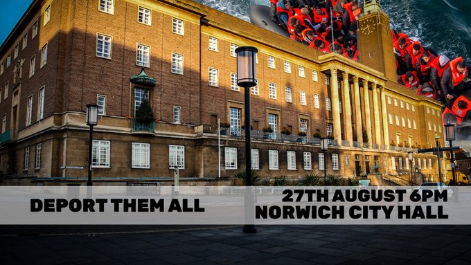 You didn’t think my Charges would silence me, did you? On WEDNESDAY 27th of AUGUST at 6PM, we take to Norwich City Hall to peacefully demand the DEPORTATION of all ECONOMIC MIGRANTS. Just down the road from the City Hall, is Bethel Street Police Station. We will also be standing with ALL activists that have been arrested and charged with WORDS. Wednesday, 27th August, 6pm, Norwich City Hall. BE THERE.