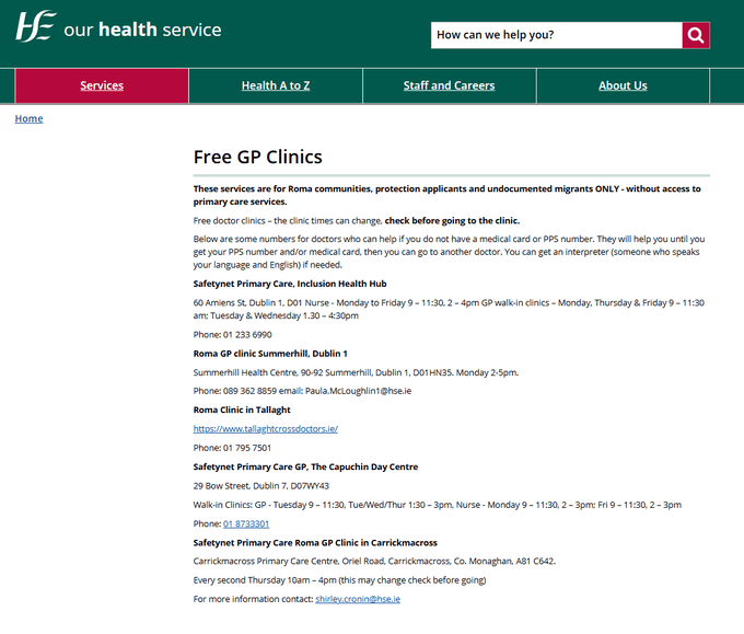 Ah lads you cannot make this up HSE are offering Free GP Clinics These services are for Roma Communities, Protection applicants and undocumented Migrants ONLY – without access to primary care services. Now here is the thing Roma’s are coming to Ireland which they are entitles to do as EU Citizens, How ever the law is very clear in respect of this. If you are an EU citizen, you have certain residency Rights in Ireland. You also have residency rights if you are a citizen of the European Economic Area (EEA) and Switzerland. The EEA is made up of the member states of the EU, plus Norway, Iceland and Liechtenstein. Your right to reside depends on what you are doing in Ireland. Your residence rights also apply to certain family members, even if they are not EEA or Swiss citizens themselves. You can enter Ireland and stay here for up to 3 months (6 months if you are looking for a job) without restriction. If you plan to stay more than 3 months, you must either: Be working (either employed or self-employed) Have enough money and sickness insurance to support yourself and your family Be enrolled as a student or vocational trainee or Be a family member of an EEA or Swiss citizen in one of the previous categories. So Again I ask why are these people here.