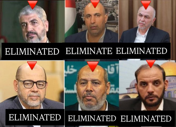 10 Sep, 2025 Uncategorized Not a single Hamas leader is left alive. They are all dead. Posted by Fred Bassett Share this: Click to share on X (Opens in new window) X Click to share on Facebook (Opens in new window) Facebook Click to share on LinkedIn (Opens in new window) LinkedIn Click to share on Reddit (Opens in new window) Reddit Click to email a link to a friend (Opens in new window) Email More Click to print (Opens in new window) Print Like Loading... Related