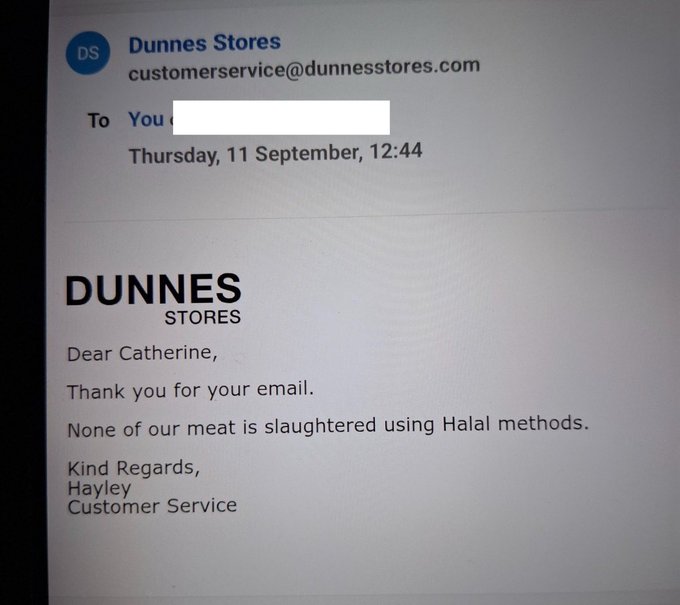 I have a letter in to FSAI re Labelling. This email came from a follower. I do not support Halal slaughtering- it is barbaric and an animal welfare issue. The meat is also blessed by Allah making it religious meat. As a Christian, I do not want to eat meat blessed by Allah. And 5 Million Irish Support you JK, Beware of Sinn Fein.