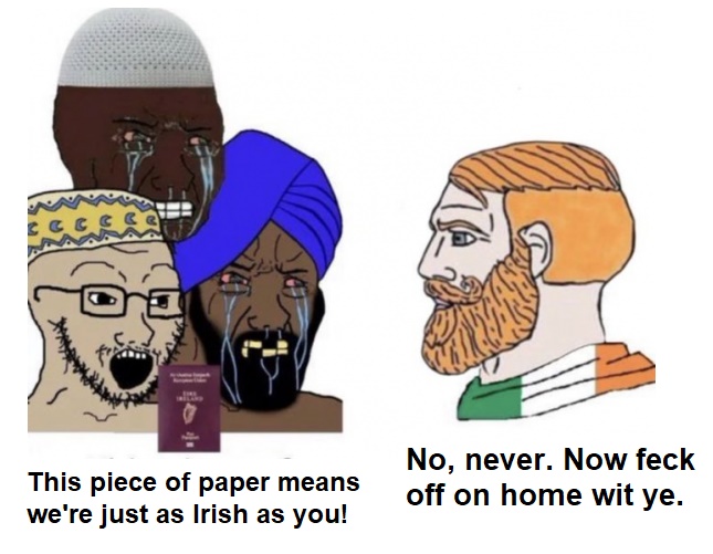 15 Sep, 2025 Uncategorized They may Get a Irish Passport, but they Never will be Irish. Posted by Fred Bassett Share this: Click to share on X (Opens in new window) X Click to share on Facebook (Opens in new window) Facebook Click to share on LinkedIn (Opens in new window) LinkedIn Click to share on Reddit (Opens in new window) Reddit Click to email a link to a friend (Opens in new window) Email More Click to print (Opens in new window) Print Like Loading... Related