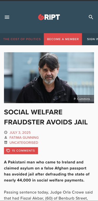Authoritarian Ireland 2025 under Fine Gael & Fianna Fáil. 1. Illegal Pakistani Migrant who claimed Asylum on a fake Passport avoided jail after illegally obtaining €44k in social welfare payments2. An Irish man gets 7 months in Prison for recording illegal Migrants.